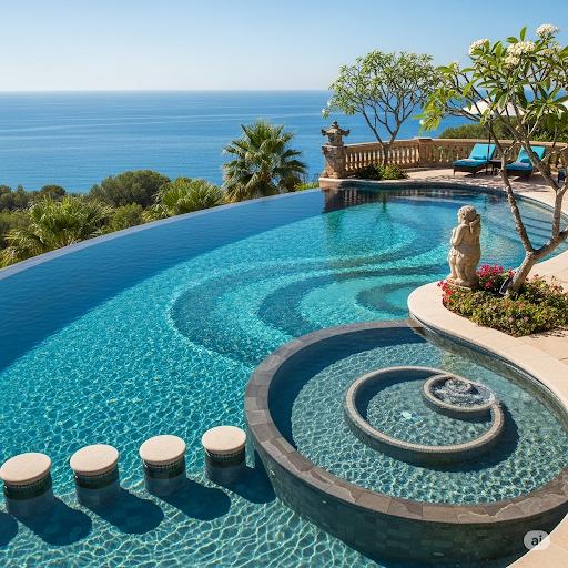 Las formas de nuestras piscinas, ya sean rectangulares o basadas en geometrías especiales, están pensadas para reflejar los patrones armónicos que se encuentran en la naturaleza. Con la elección de materiales nobles como el mosaico vítreo o piedras naturales con cuarzo, creamos espacios que reflejan la belleza de la naturaleza y perduran en el tiempo.